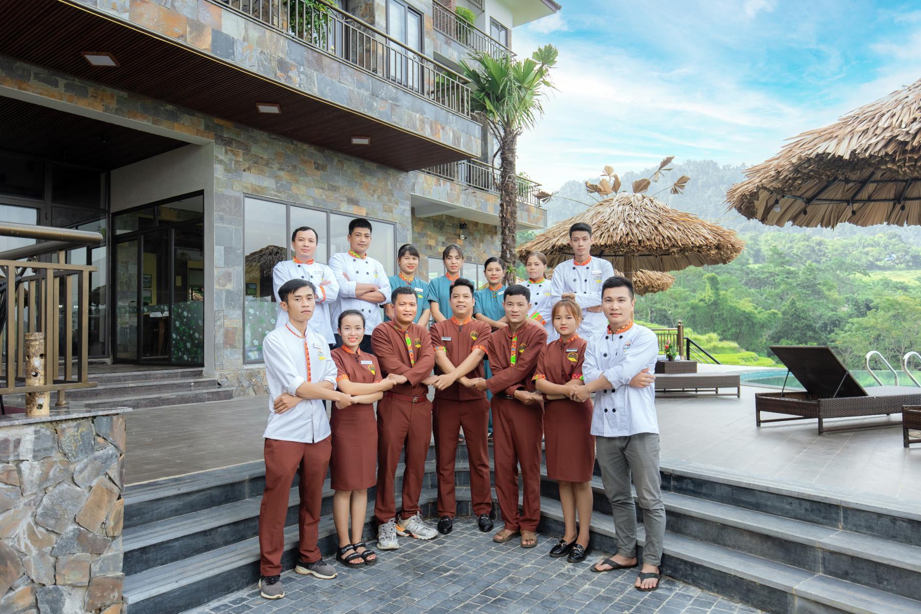 Tôi đi cùng nhóm 15 người và thử trải nghiệm phòng sàn rộng rãi. Trải nghiệm khá tốt và chất lượng phòng cũng khá tốt. Có thể thêm giỏ đựng đồ giặt bên ngoài chậu rửa tay và lò sưởi trong phòng. Do số lượng người đông, nhưng nhân viên khách sạn rất nhiệt tình và hỗ trợ. Anh Thắng, Tổng quản lý, cũng có phong thái chuyên nghiệp và hiếu khách. Nhóm chúng tôi cũng rất thích quang cảnh từ khách sạn với hồ bơi vô cực nhìn ra ruộng bậc thang. Nếu có cơ hội, bạn cũng có thể tham gia trải nghiệm săn mây.